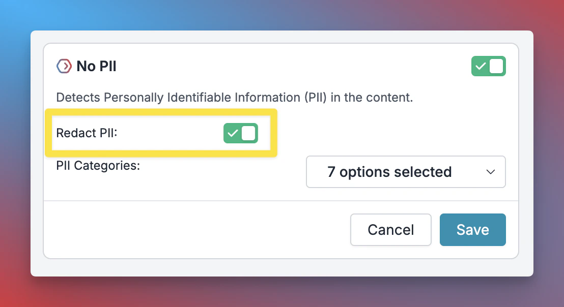 On the Guardrail creation page, for select PII guardrails, you will see a Redact PII toggle. Just enable it to start redacting PII in your requests.