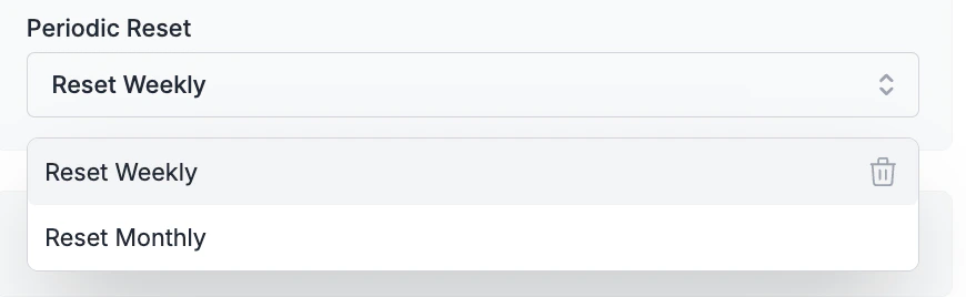 • Weekly resets occur at the beginning of each week (Sunday at 12 AM UTC)
